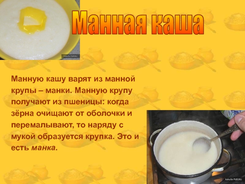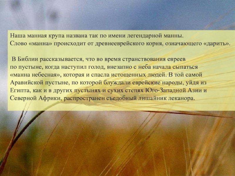 Слайд 16Наша манная крупа названа так по имени легендарной манны.