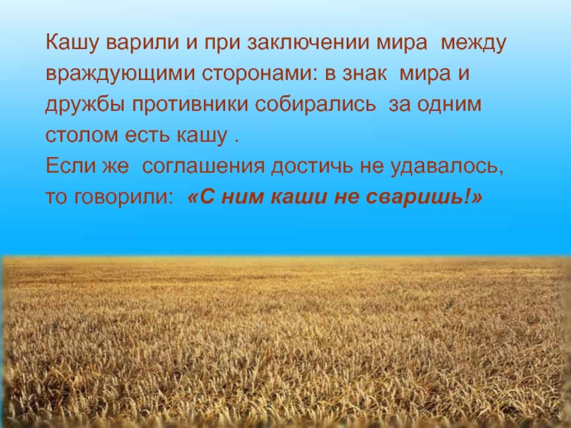 Слайд 13 Кашу варили и при заключении мира между