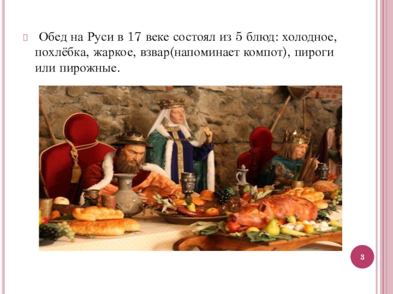 Слайд 3 Обед на Руси в 17 веке состоял из 5 блюд: