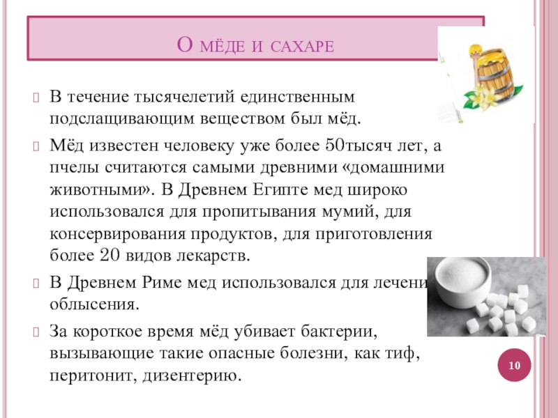 Слайд 10О мёде и сахаре