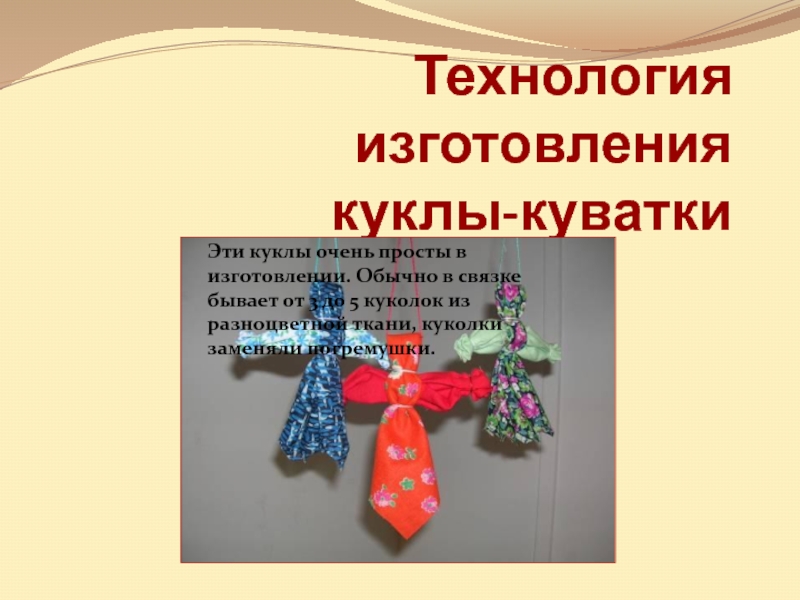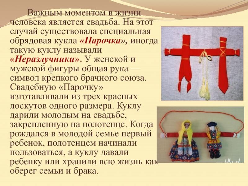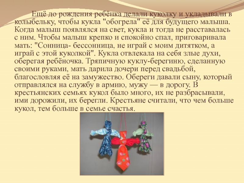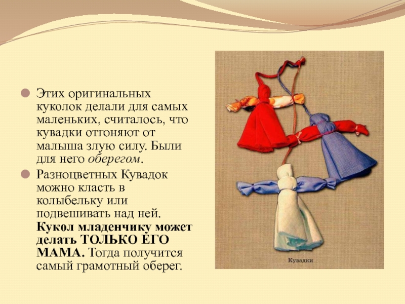 Слайд 17Этих оригинальных куколок делали для самых маленьких, считалось, что кувадки отгоняют