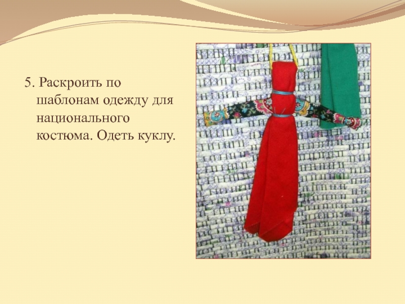 Слайд 245. Раскроить по шаблонам одежду для национального костюма. Одеть куклу.