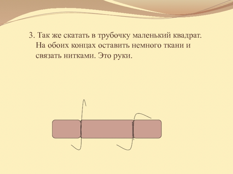 Слайд 223. Так же скатать в трубочку маленький квадрат. На обоих концах