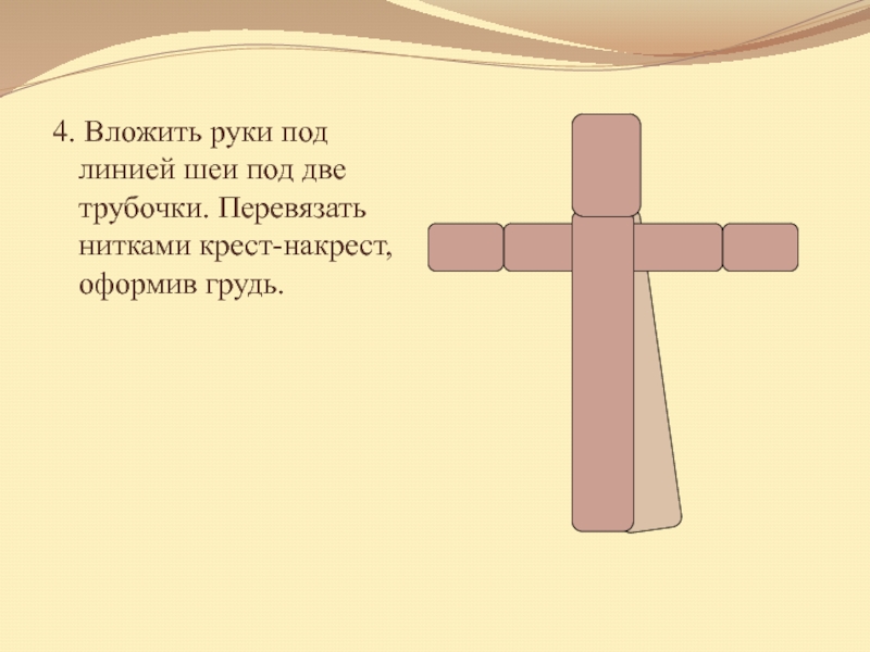 Слайд 234. Вложить руки под линией шеи под две трубочки. Перевязать нитками