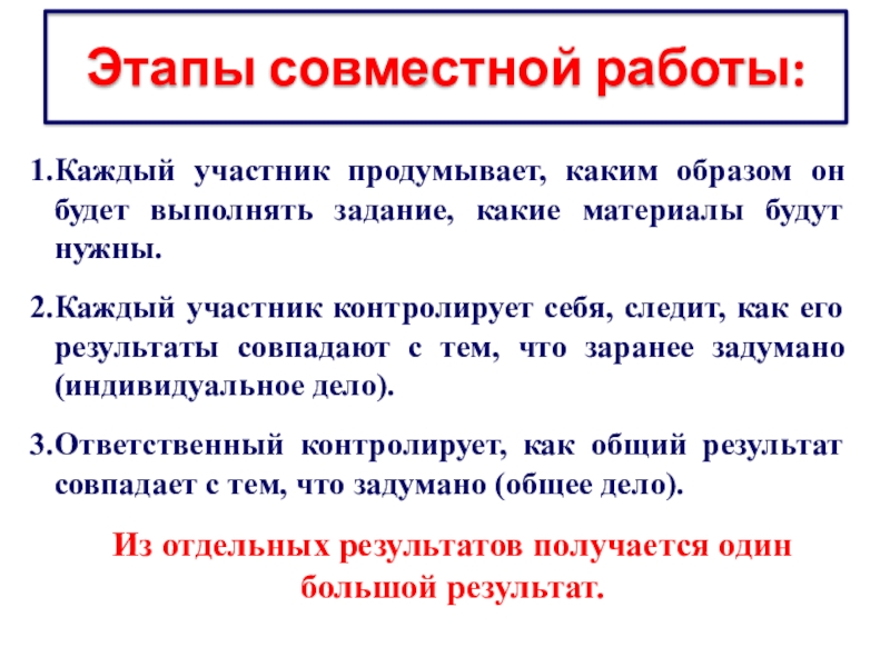 Этапы совместной работы: