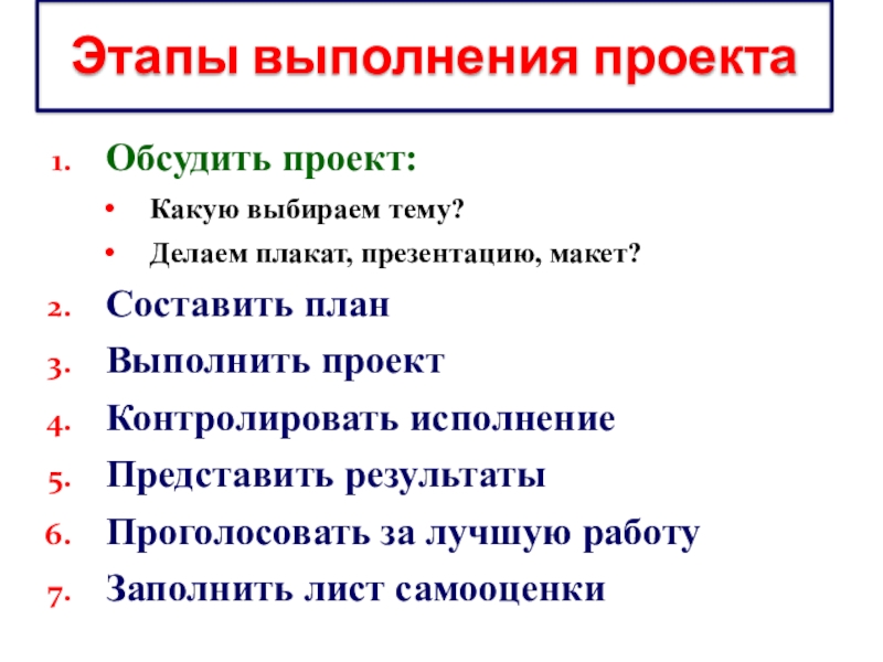 Этапы выполнения проекта