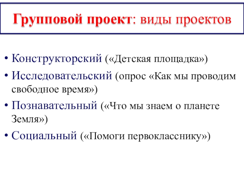 Групповой проект: виды проектов