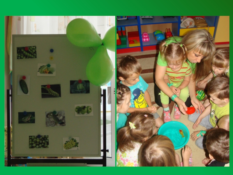 Научить группировать предметы по цвету и отдельным цветовым деталям.