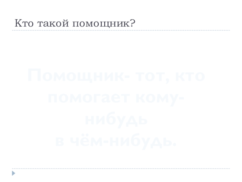 Кто такой помощник?Помощник- тот, кто помогает кому-нибудьв чём-нибудь.