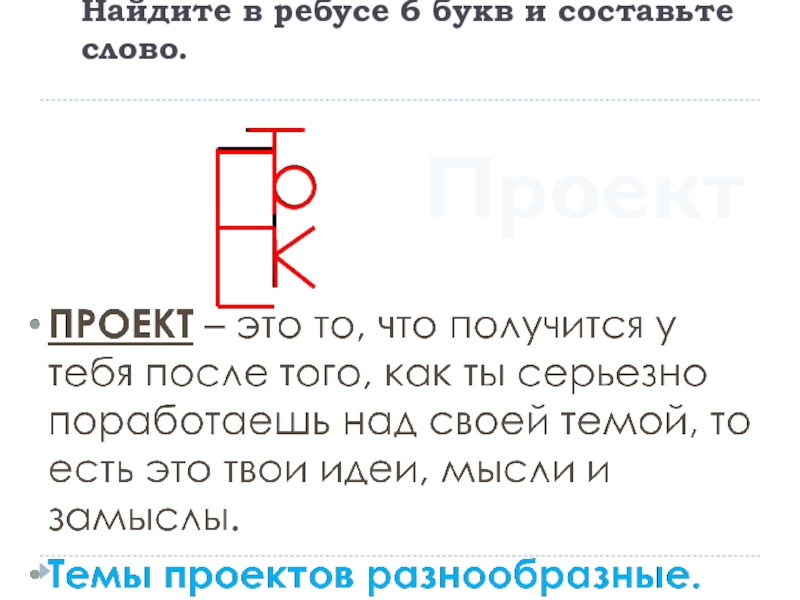 Найдите в ребусе 6 букв и составьте слово.Проект