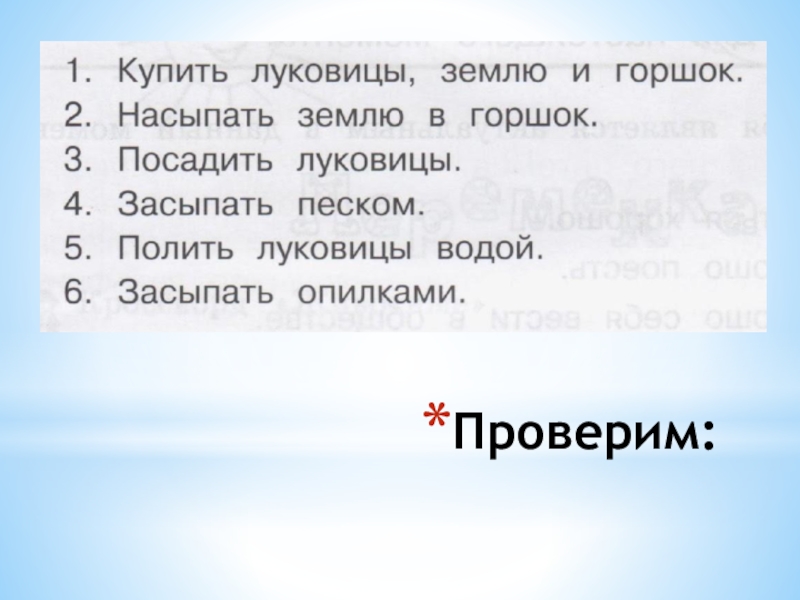 Свою работу она поделила на несколько этапов. Пронумеруй этапы по порядку так, чтобы к весне у Лены был подарок для мамы.