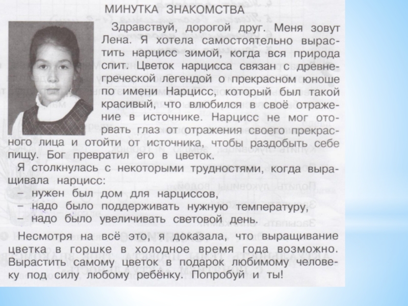 Слайд 3Лена решила подарить маме на 8 Марта нарцисс, который вырастит сама.