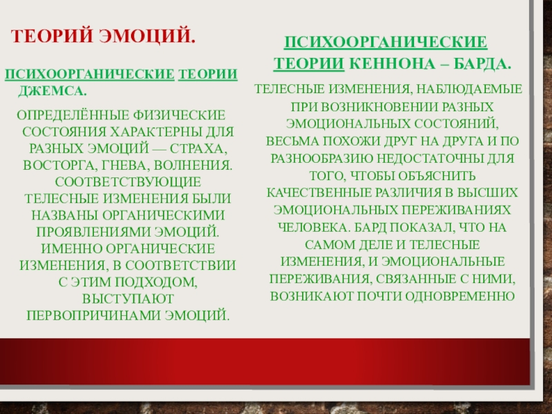 Слайд 20ТЕОРИИ ЭМОЦИЙ
