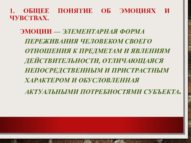 Слайд 41. ОБЩЕЕ ПОНЯТИЕ ОБ ЭМОЦИЯХ И ЧУВСТВАХ.