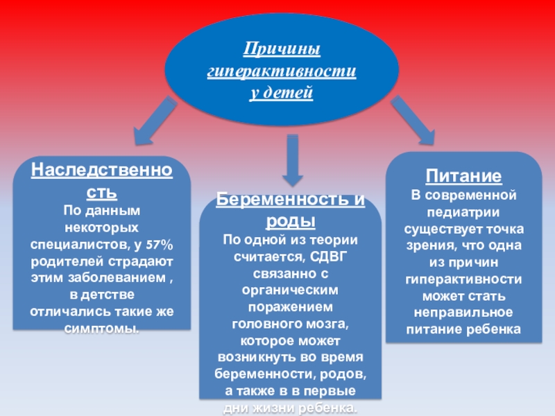 По одной из теории считается, СДВГ связанно с органическим поражением головного мозга, которое может возникнуть во время беременности, родов, а также в в первые дни жизни ребенка.