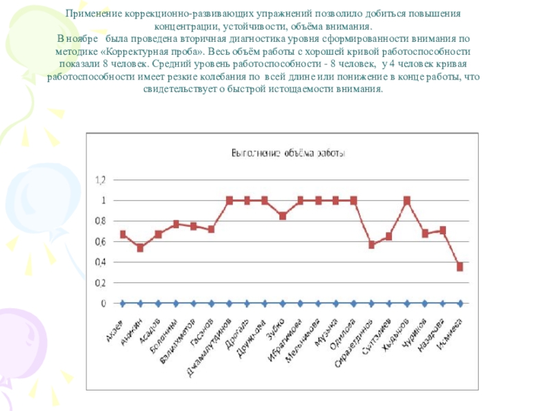 В результате проводимых упражнений прослеживается положительная динамика в развитии словарного запаса детей, грамматически правильного построения предложений.