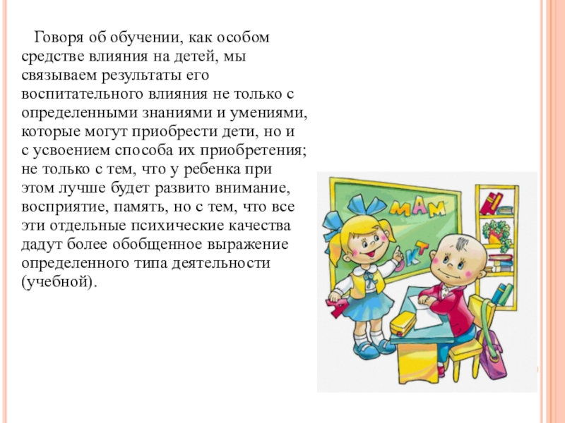 Слайд 3 Говоря об обучении, как особом средстве влияния на детей,