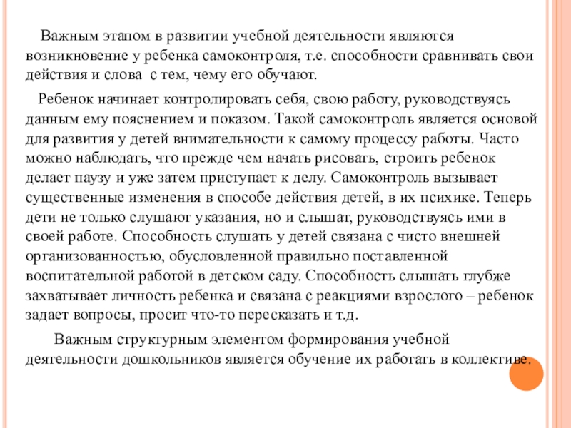 Слайд 2Общая характеристика учебной деятельности дошкольника.