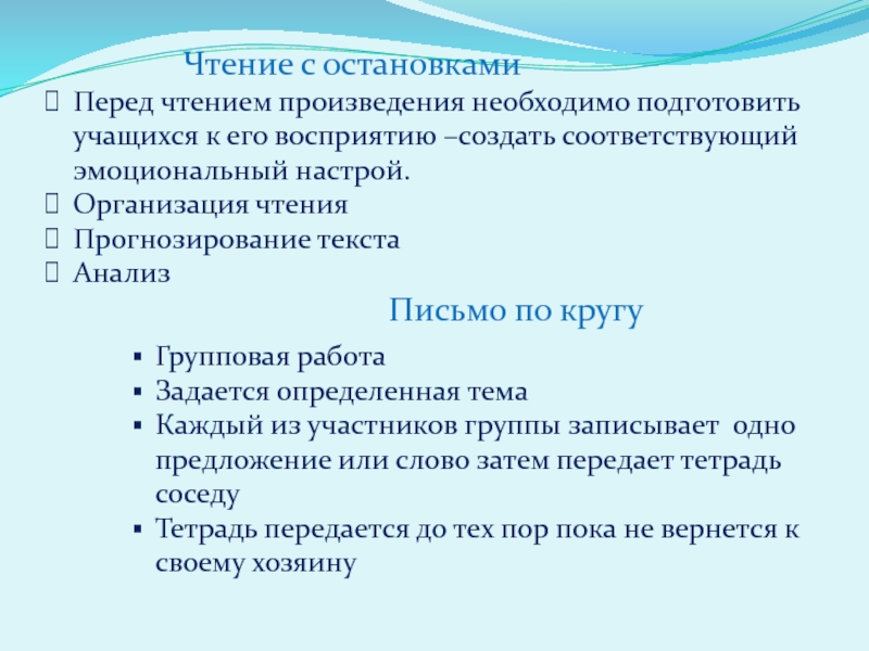 Каждый из участников группы записывает одно предложение или слово затем передает тетрадь соседу