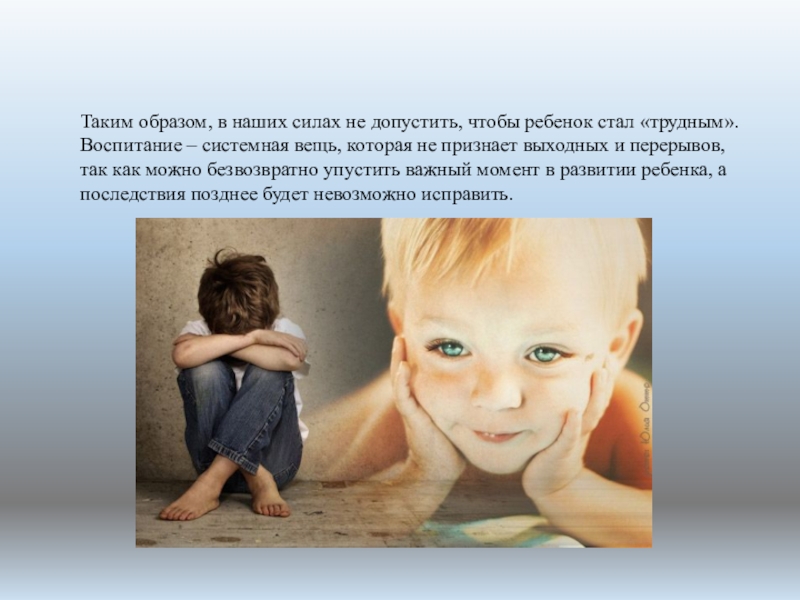 Слайд 12Таким образом, в наших силах не допустить, чтобы ребенок стал «трудным».