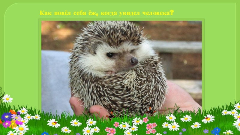 Слайд 3Как повёл себя ёж, когда увидел человека?