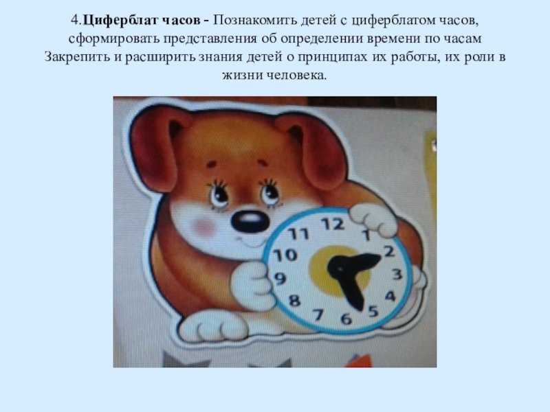 4.Циферблат часов - Познакомить детей с циферблатом часов, сформировать представления об