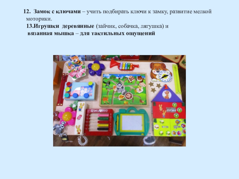 Слайд 15 12. Замок с ключами – учить подбирать ключи