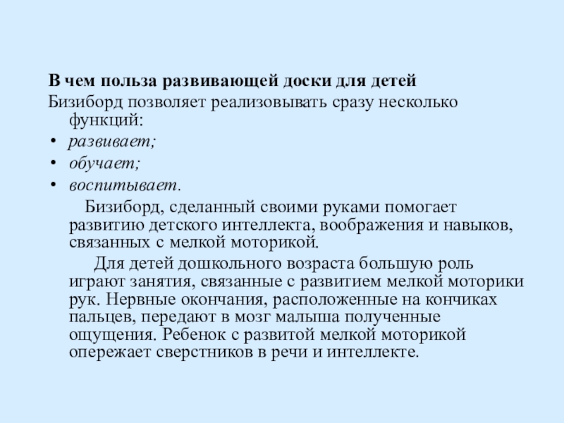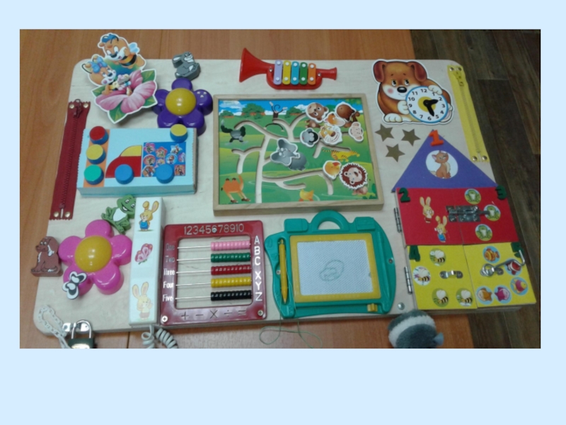 Бизиборд, сделанный своими руками помогает развитию детского интеллекта, воображения и навыков, связанных с мелкой моторикой.