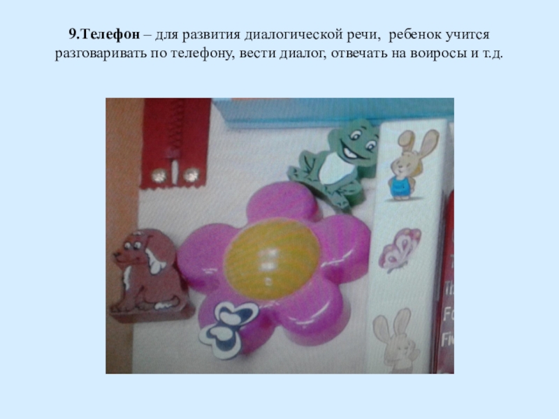 Слайд 129.Телефон – для развития диалогической речи, ребенок учится разговаривать по телефону,