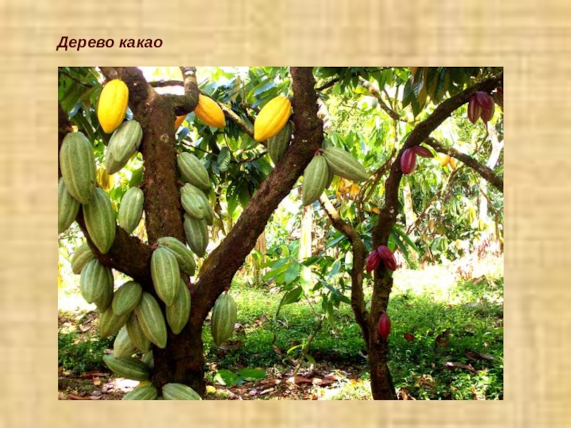 Слайд 3Плоды какао растут на стволе . Сначала их срезают специальным ножом