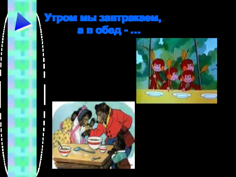 Слайд 6 Утром мы завтракаем, а в обед - …