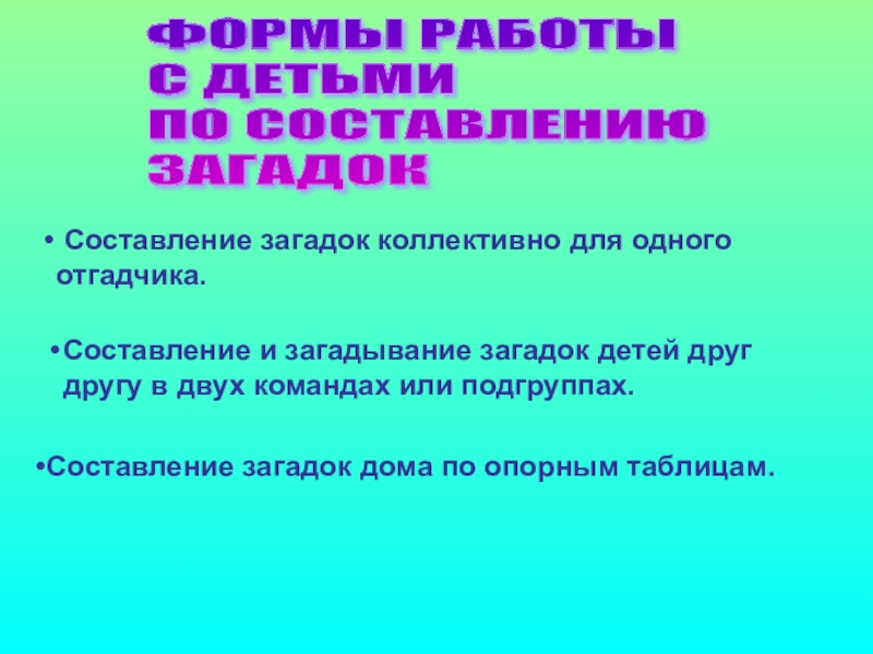 Составление загадок дома по опорным таблицам.