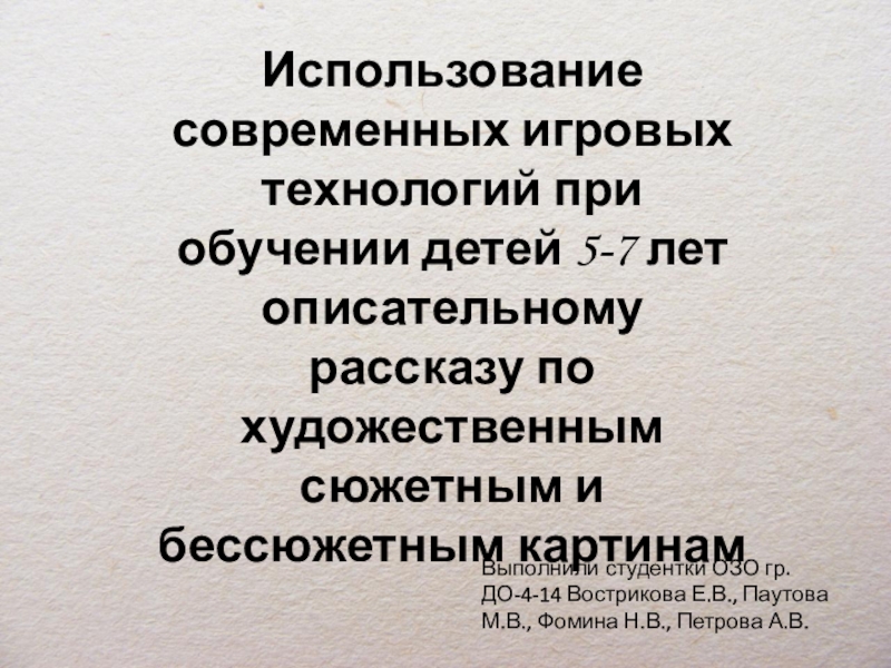 Использование современных игровых технологий при обучении детей 5-7 лет описательному рассказу по художественным сюжетным и бессюжетным картинам