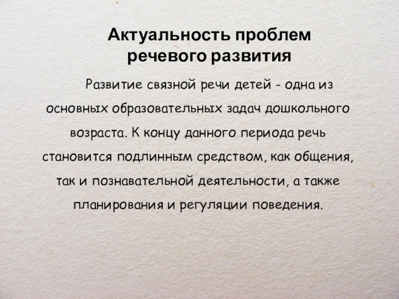 Актуальность проблем речевого развития
