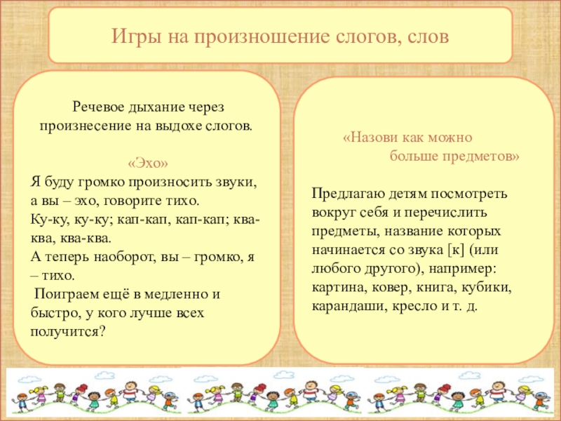 Игры на произношение слогов, слов