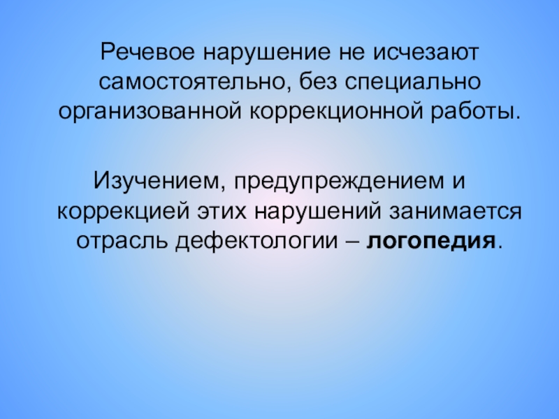 Слайд 4 Речевое нарушение не исчезают самостоятельно, без специально организованной коррекционной