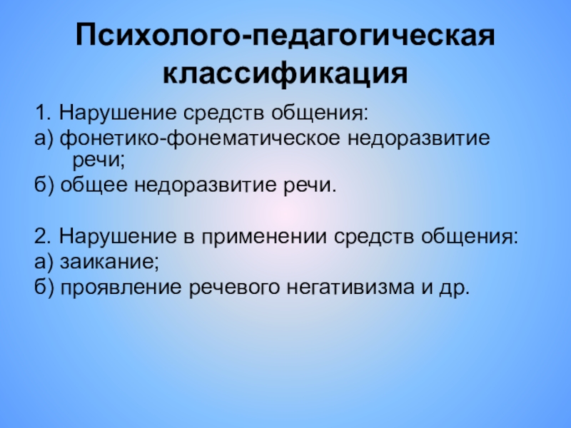 Слайд 13Психолого-педагогическая классификация