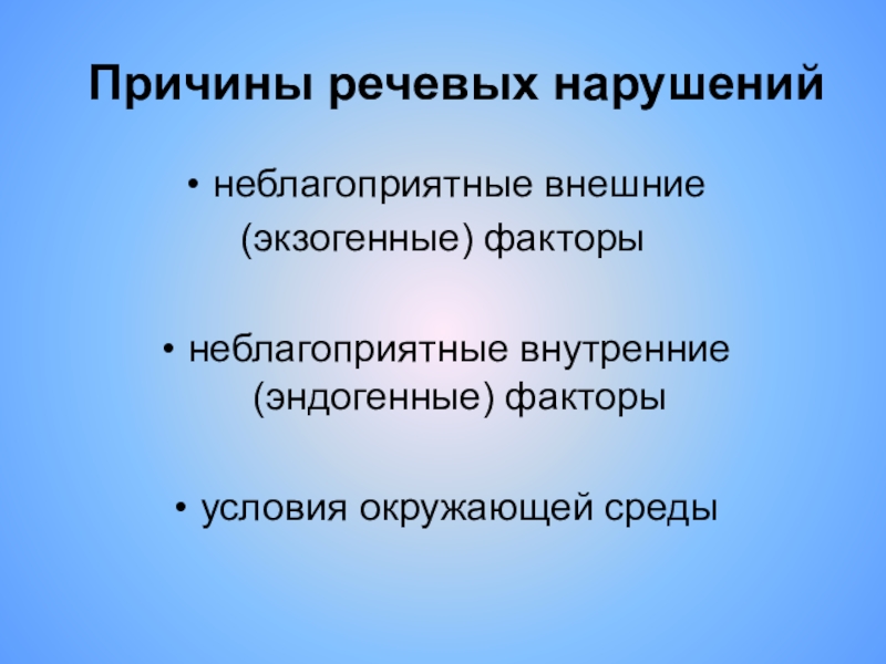 Слайд 5 Причины речевых нарушений