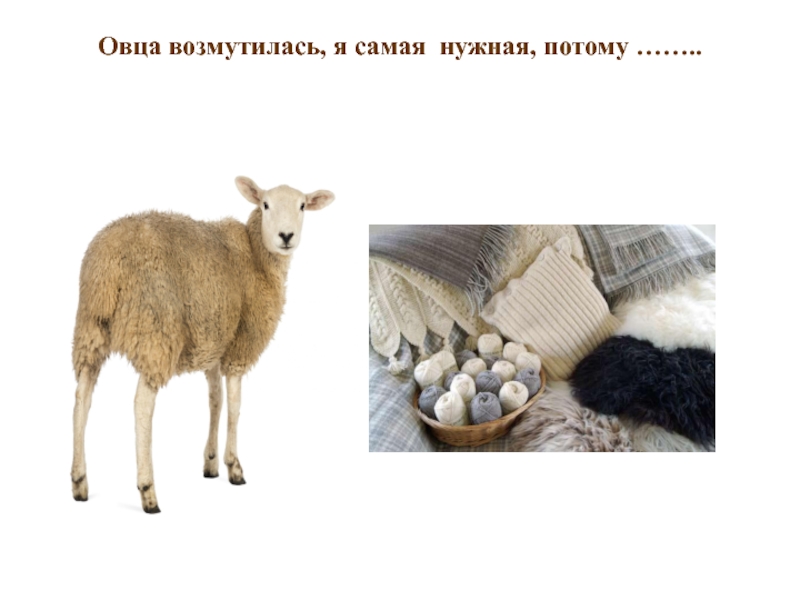 Слайд 21Овца возмутилась, я самая  нужная, потому ……..