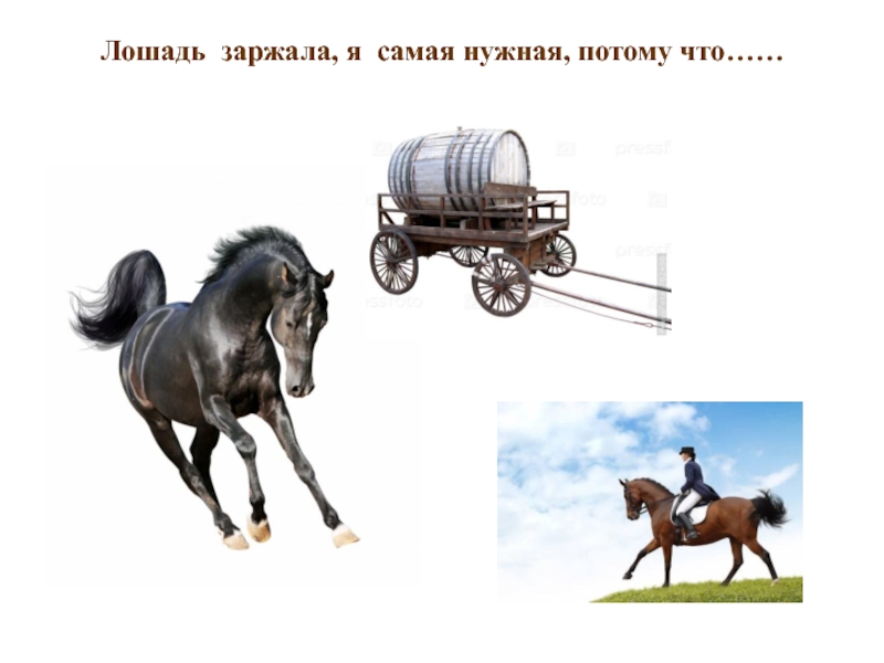 Слайд 22Лошадь  заржала, я  самая нужная, потому что……