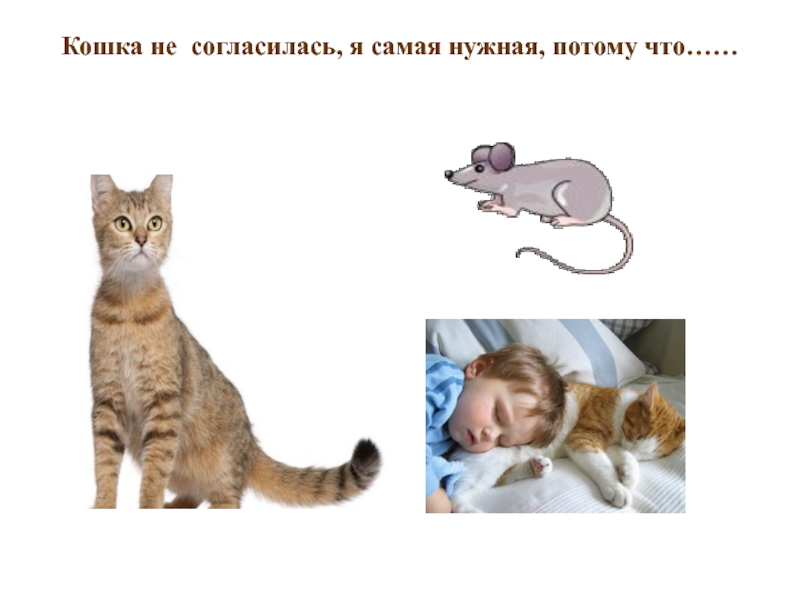 Слайд 19Кошка не  согласилась, я самая нужная, потому что……