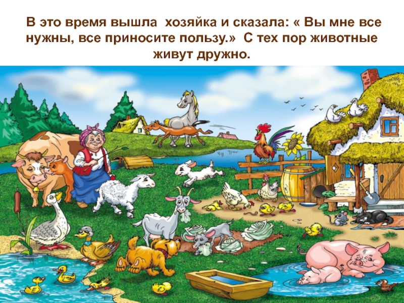 В это время вышла  хозяйка и сказала: « Вы мне все нужны, все приносите пользу.»  С тех