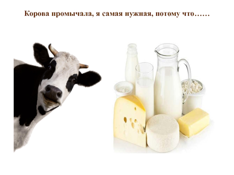 Слайд 20Корова промычала, я самая нужная, потому что……