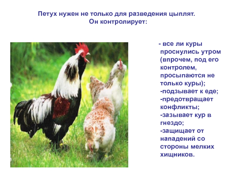 - все ли куры проснулись утром (впрочем, под его контролем, просыпаются не только куры);