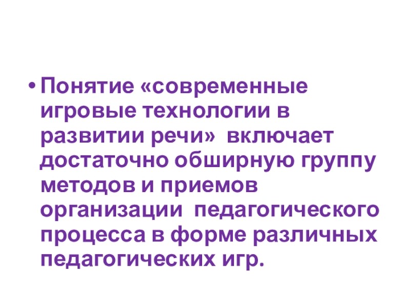 Понятие «современные игровые технологии в развитии речи»  включает достаточно обширную группу методов и приемов организации педагогического процесса