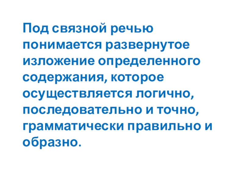Под связной речью понимается развернутое изложение определенного содержания, которое осуществляется логично,