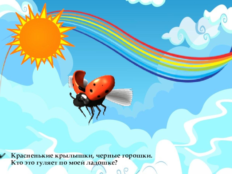Слайд 6Красненькие крылышки, черные горошки. Кто это гуляет по моей ладошке?