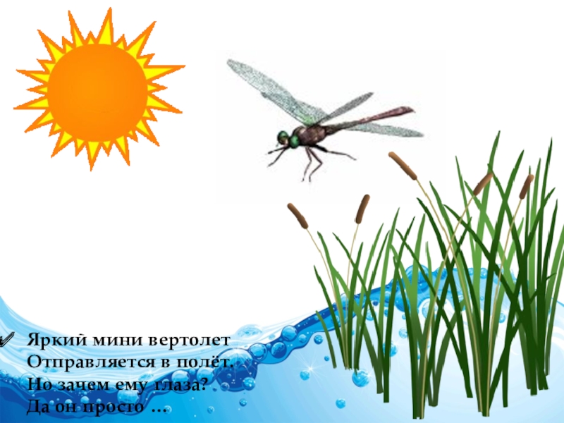 Слайд 3Яркий мини вертолет Отправляется в полёт. Но зачем ему глаза? Да он просто …