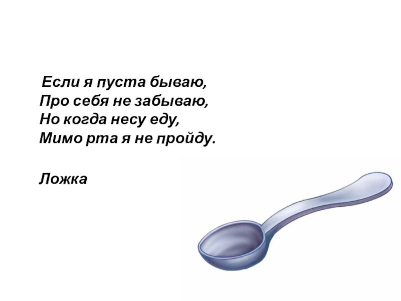 Если я пуста бываю, Про себя не забываю, Но когда несу еду, Мимо рта