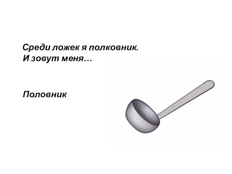 Слайд 5 Среди ложек я полковник. И зовут меня…